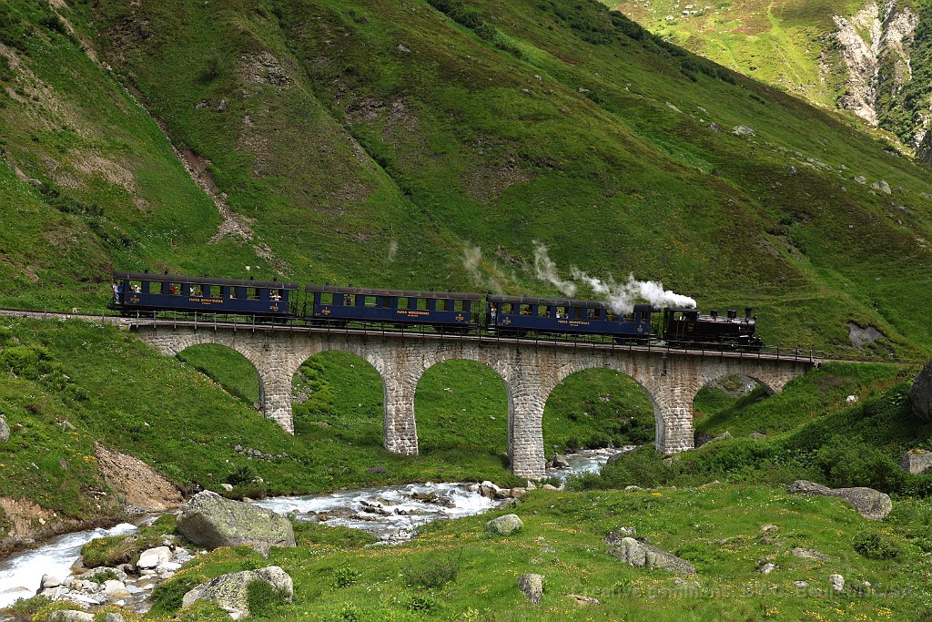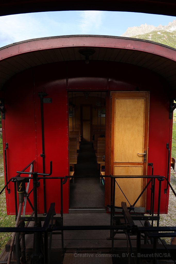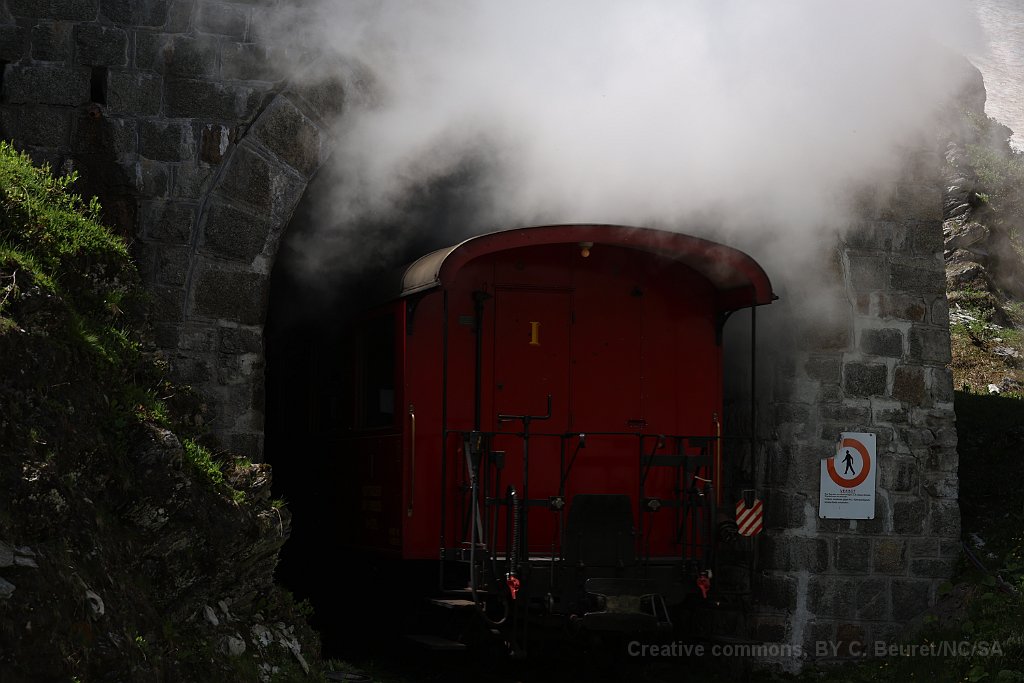 3 Le premier train du matin est le train des randonneurs, tracté par la HGm 4/4 62 du MGB
