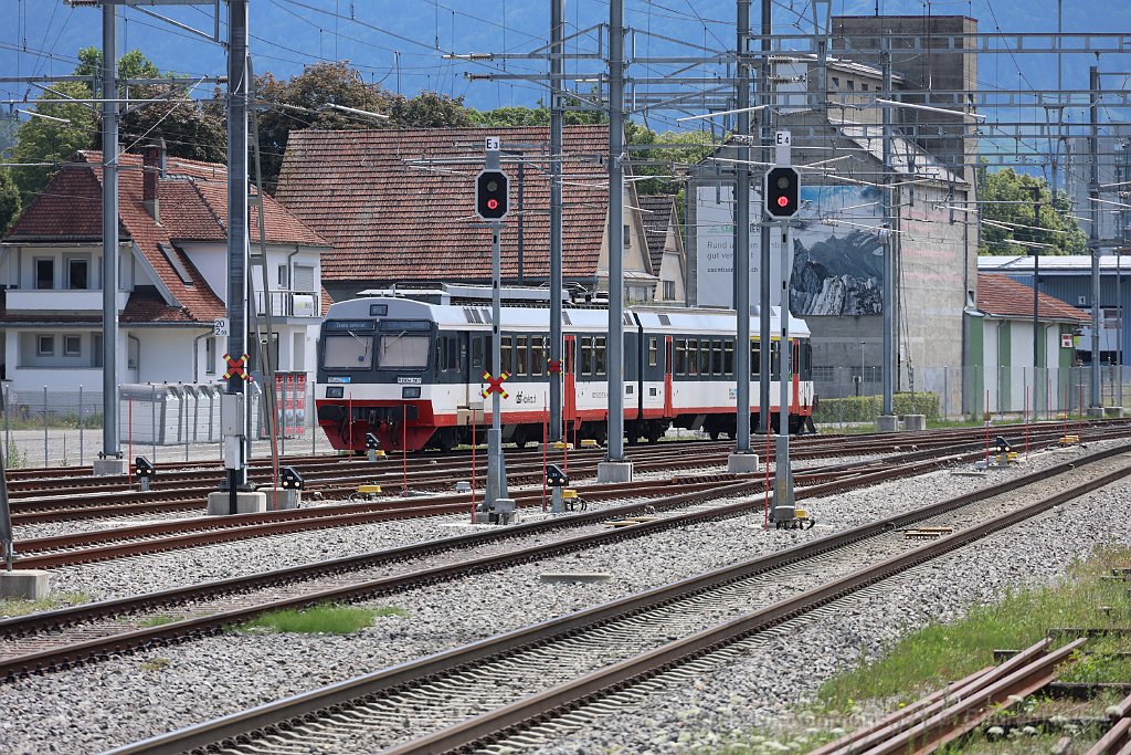 15 Elle est accompagnée de la voiture-pilote ABt 205. Le inscriptions Trains spécial et Fermé sont d'ailleurs en français.