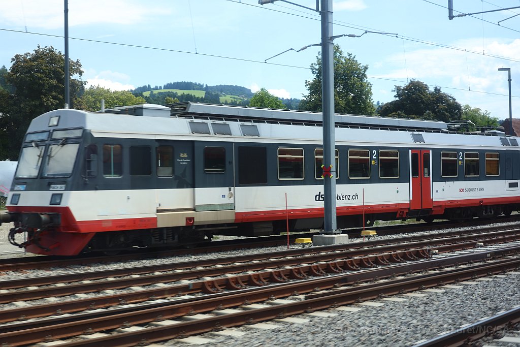 14 C'est la RBDe 567 317 ex-TRN qui porte encore sa dernière livrée TransN. Mais on devine encore la fée, logo du Val-de-Travers. De plus, elle porte aussi le logo SOB en plus de celui de dsf-Koblenz