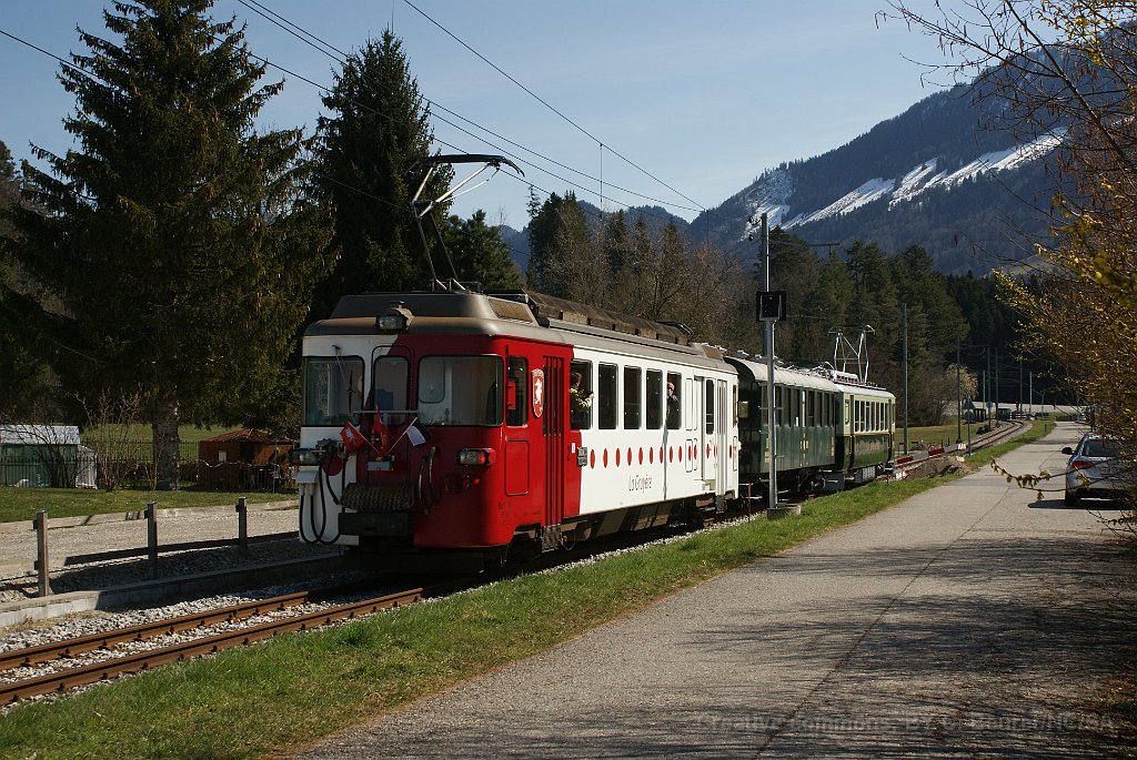 5 Trains composé de la Be 4/4 131, une voiture C4 111 ex-CFF (ligne du Brünig) et de la BDe 4/4 141