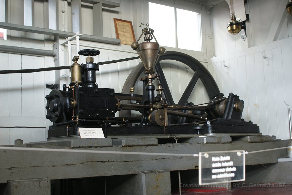 25 Détail de la machine à vapeur qui entraîne la génératrice d'un wagon d'éclairage de galerie