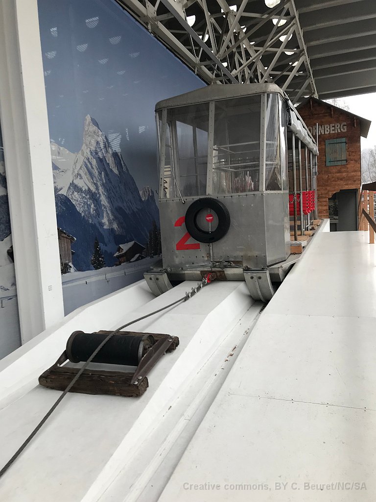 41 Sorte de funiculaire sans rail mais sur patin à neige ayant été utilisé à Schönried.