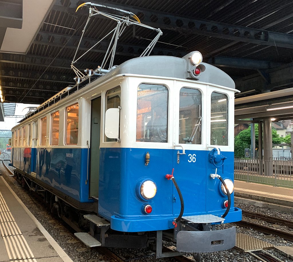 4 Course spéciale de la BDe 4/4 36 Ds Blaue Bähnli en vue de la fête du centenaire. Malheureusement, elle est tombée en panne quelques jours avant la fête.