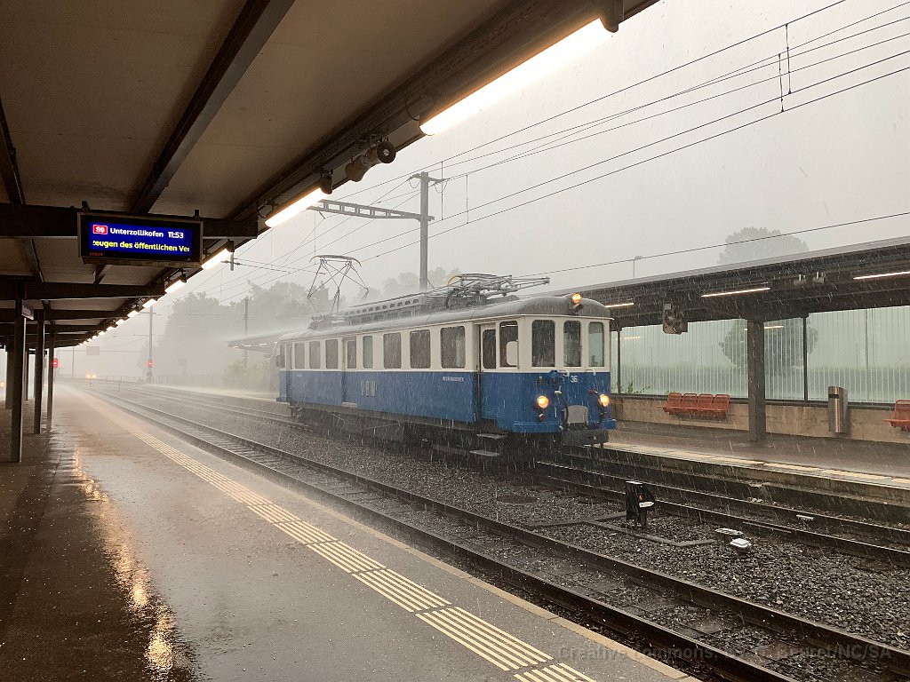 5 Presque au même endroit quelques heures plus tard. A noter que cette automotrice circulait sur la ligne Bern - Gümligen - Worb, mais qu'elle a été transformée pour circuler sur le reste du réseau RBS. Bien que classée dans RBS Historique, elle appartient en réalité à l'association Ds Blaue Bähnli.