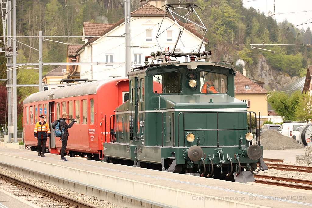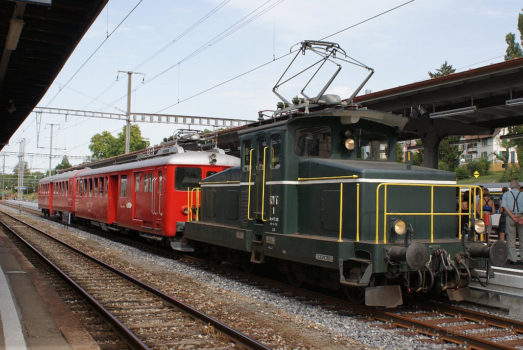 Tem de RVT-historique avec une voiture du VVT à Môtiers L'étincellante de passage à Neuchâtel Be 4/4 1 à Payerne Be 4/4 1, Etincellante et voiture-bar pour une course spéciale privée à Payerne La Be 4/4 1 a été repeinte dans son état d'origine (notamment rembardes en noir) Etincellante et Be 4/4 devant le dépôt à Fleurier
