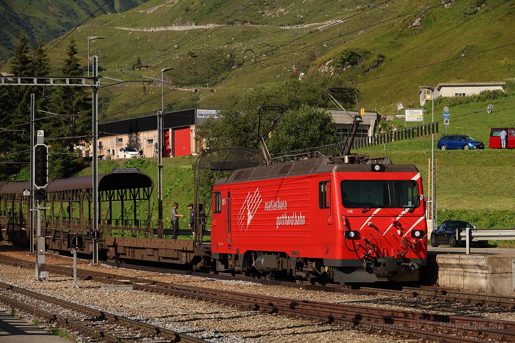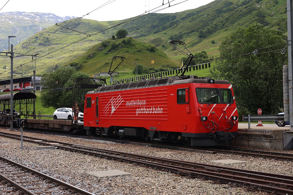HGe 4/4 II 104 "Furka" à Andermatt La 104 à Andermatt avec un train pour Disentis La 108 à Realp avec un train de voitures Toujours Realp, mais cette fois la 107