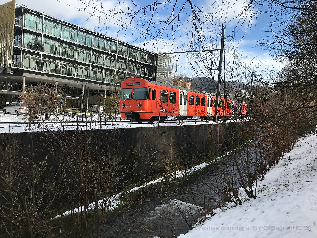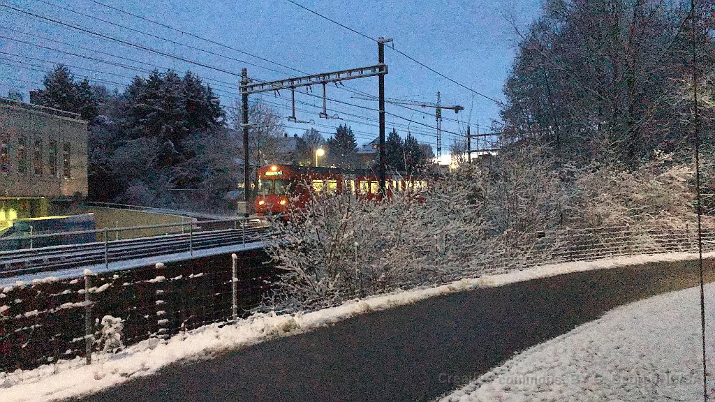 S7 à la sortie du tunnel entre Worblaufen et Papiermühle Sur un pont sous un pont. Pont(s) sur la Worble. A Papiermühle Be 4/12 à Ittigen. Il s'agit d'un essai de lumière avec l'iphone... ceci explique la qualité... Mandarine dans la neige en pleine vitesse Au passage entre Worblaufen et Papiermühle, une mandarine toute orange, y compris la voiture intermédiaire.
