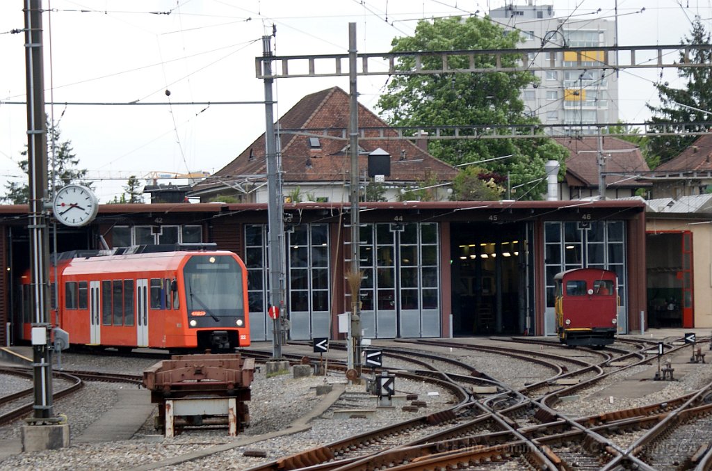 28 Dépôt de Solothurn avec un NExT et le Tm 162. On devine encore dans le dépôt la BDe 4/4 36 qui a servi au MOB de 1988 à 2007 sous l'appellation Be 4/4 36 avant d'être rappatrié par l'association Ds Blaue Bähnli qui l'a remis en été comme véhicule historique.