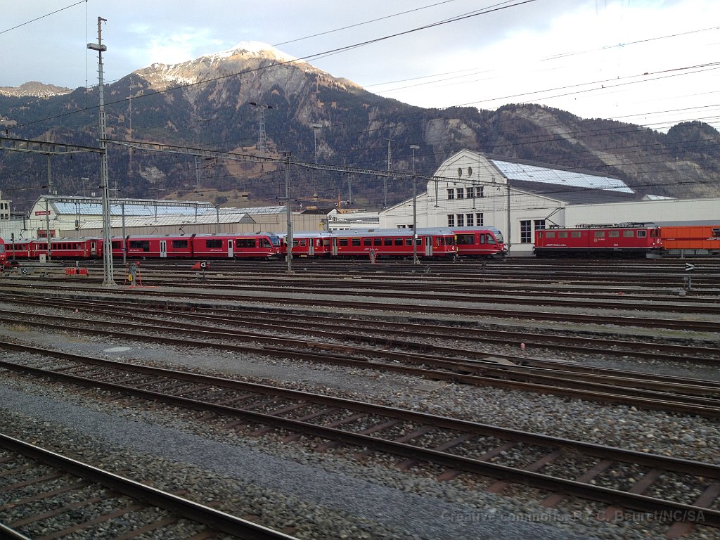 25 Landquart, divers matériel roulant (Allegra, rames pour le service de banlieue de Coire et Ge 6/6 II)