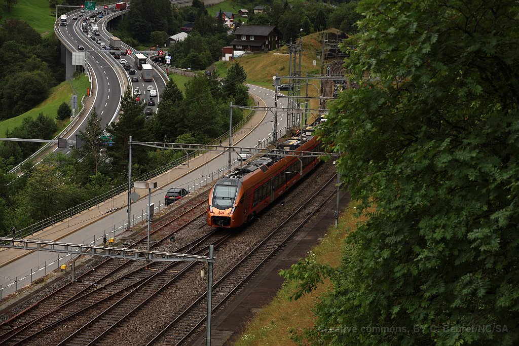 9 RABe 526 102 quitte Göschenen et entre dans le tunnel du Gothard