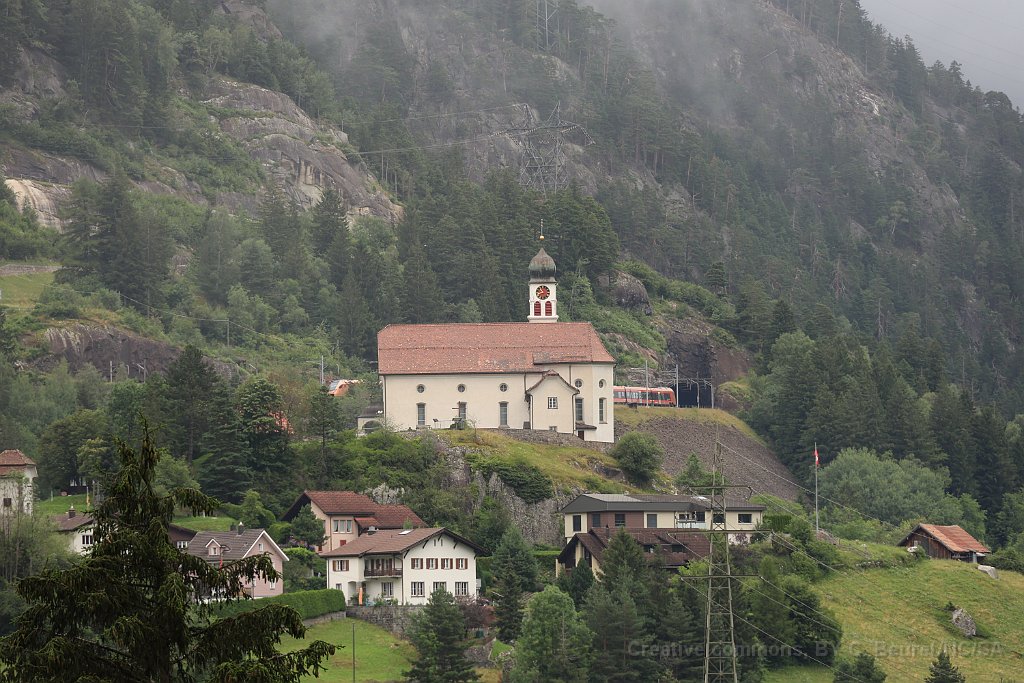 36 L'IR46 au niveau intermédiaire des lacets avec la célèbre église de Wassen