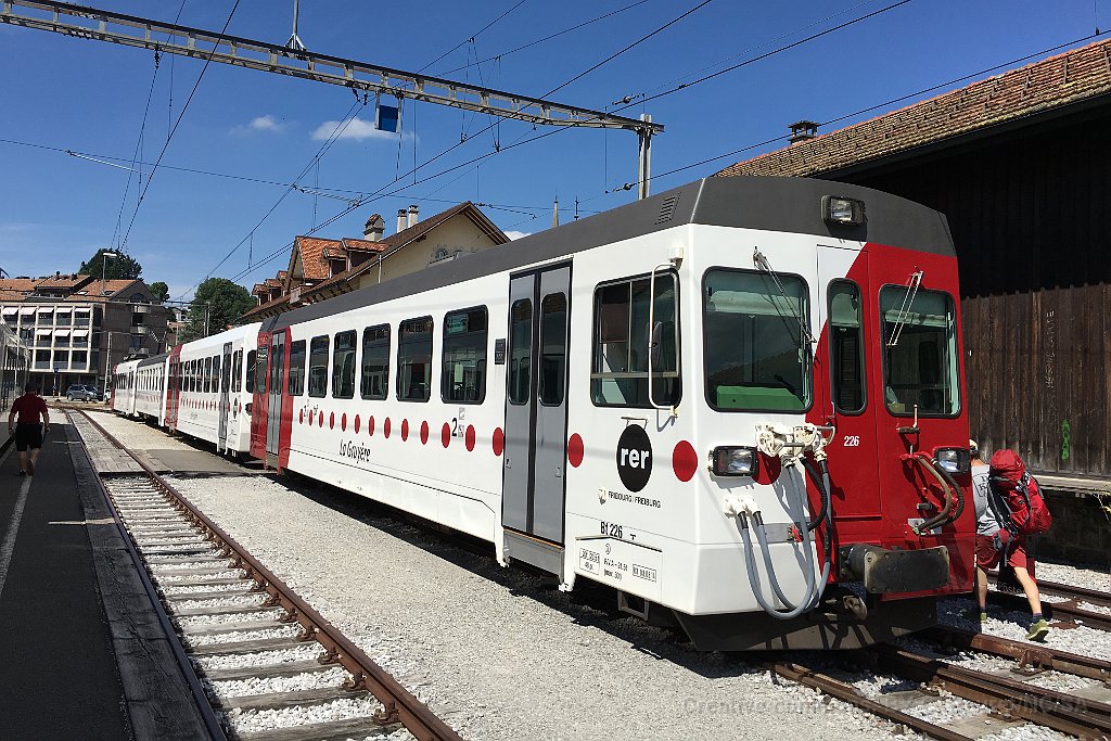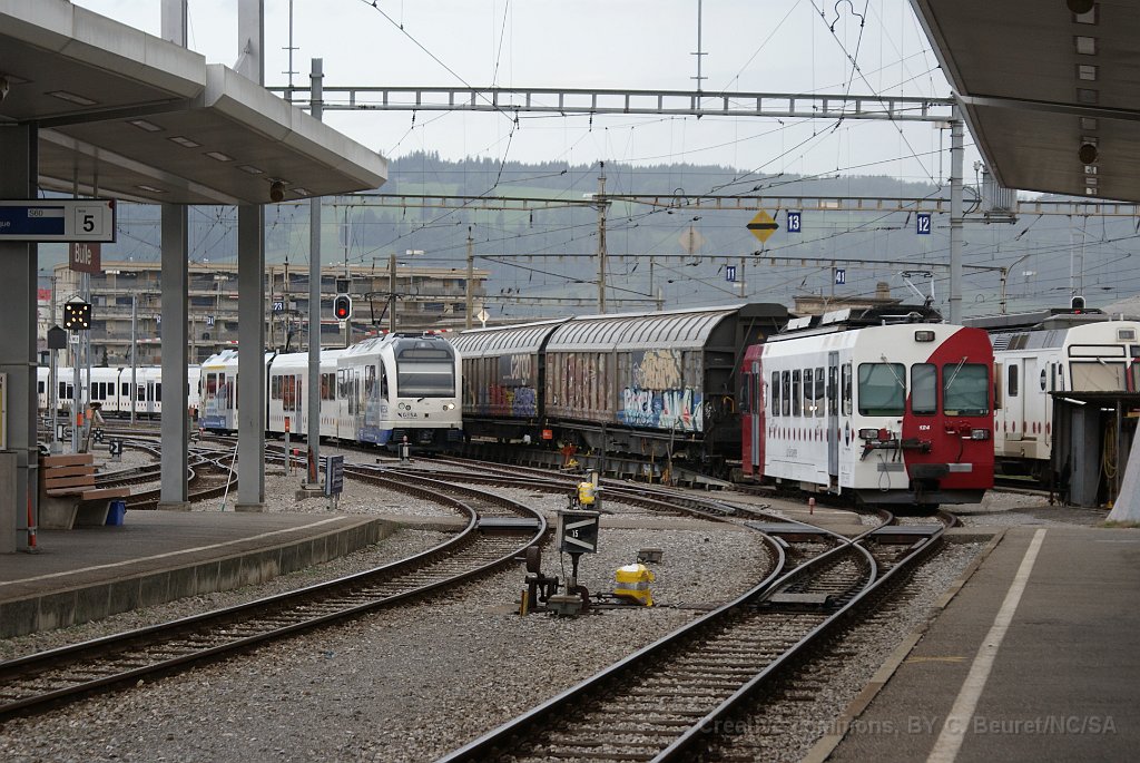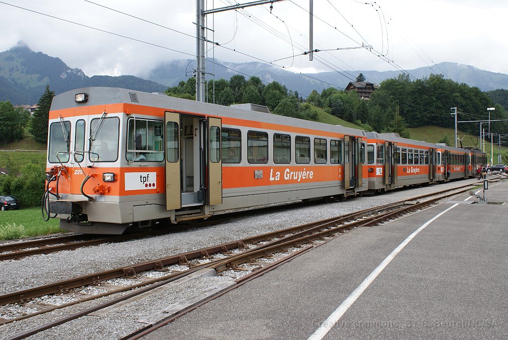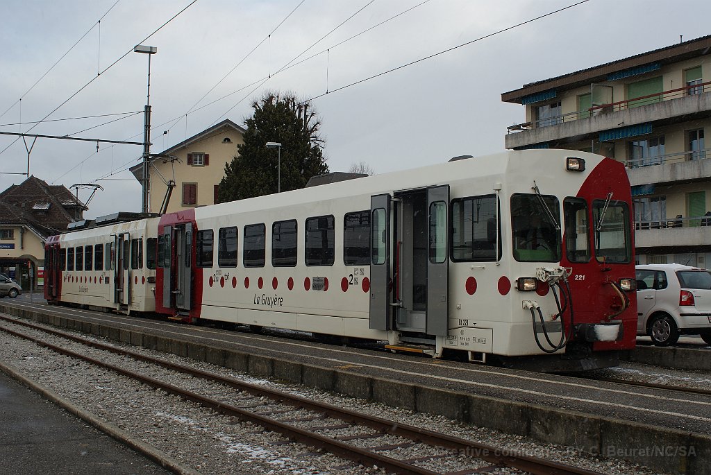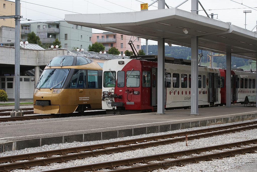 TPF voie métrique: BDe 4/4 à Montbovon BDe 4/4 TPF de la série des année 80, type Vevey, contemporaine des automotrices NStCM, TRN (CMN), LEB et TPC (ASD et AOMC). Une longue rame composée d'une automotrice Vevey et 3 voitures de commande Rame Vevey dans la nouvelle livrée à Palézieux Bulle: Be 4/4 121 à côté d'un ASt du MOB (train du chocolat) Be 4/4 122 à Bulle avec un régio direction Broc