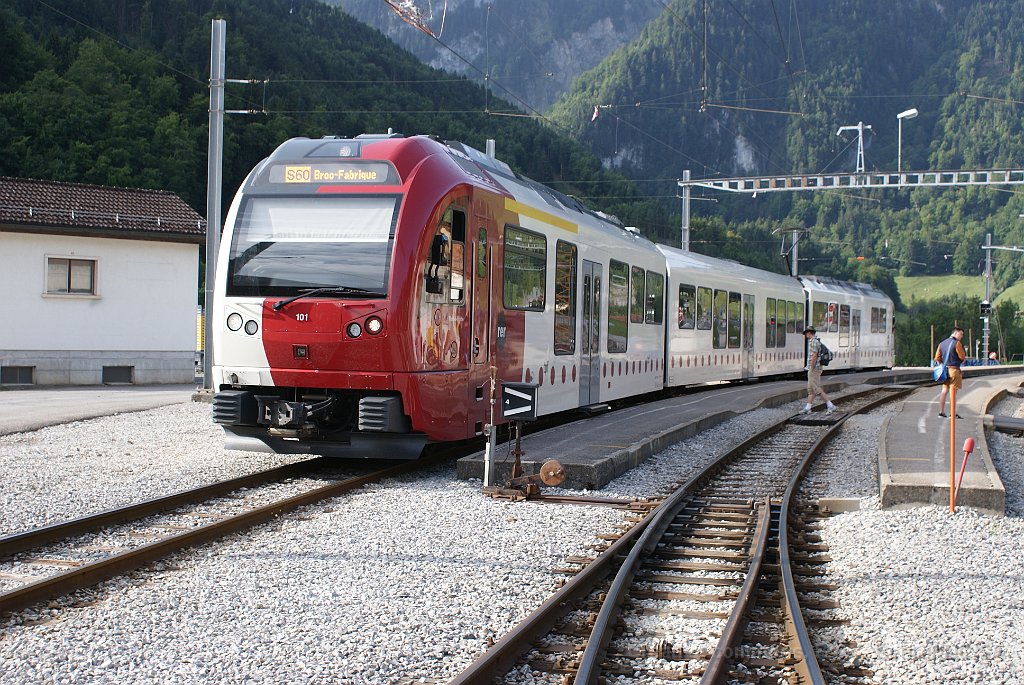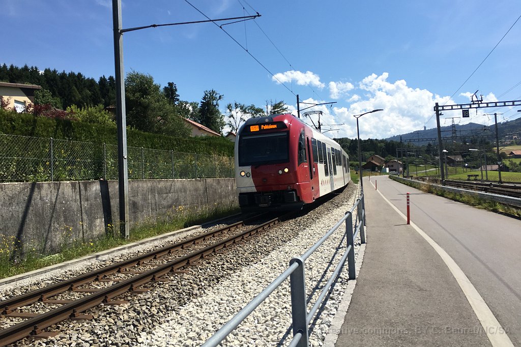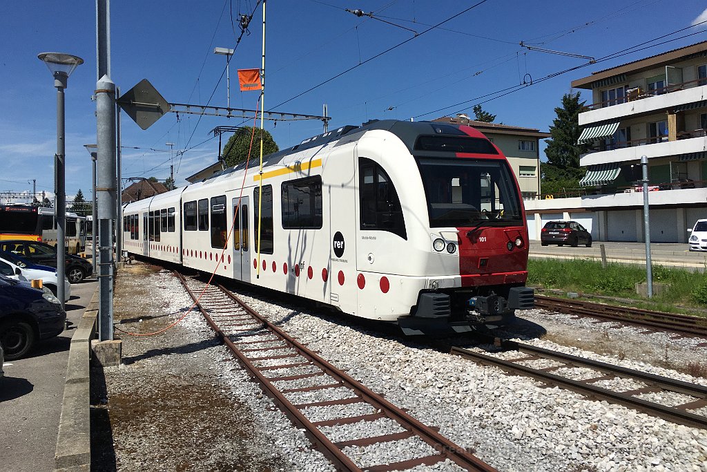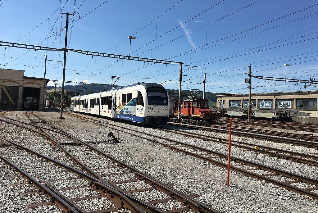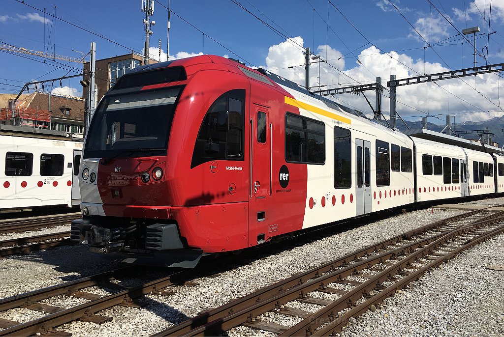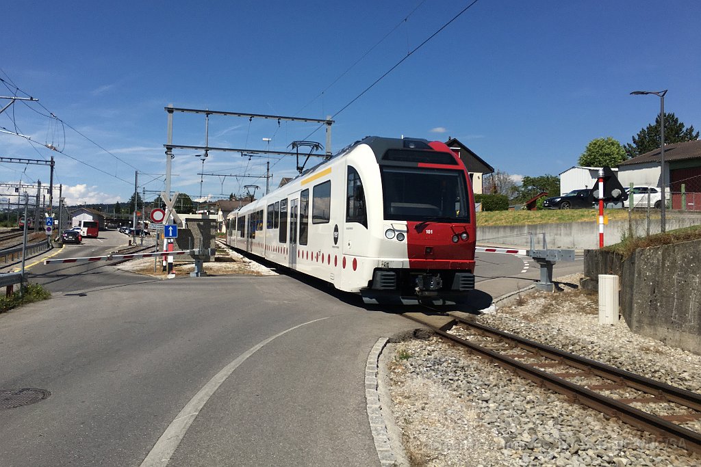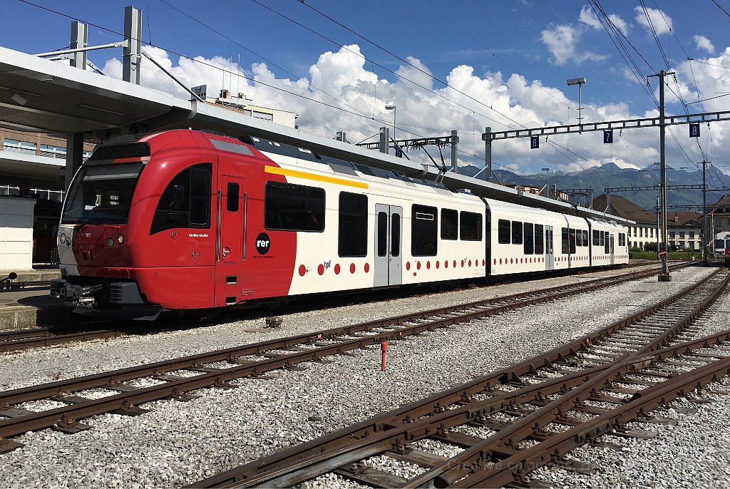 Arrivée d'une nouvelle rame Stadler à Palézieux ABe 2/4 101 au passage à niveau à Palézieux La 101 à Palézieux Rame Stadler TPF à Bulle ABe 2/4 101 Une autre rame Stadler avec pelliculage publicitaire GESA