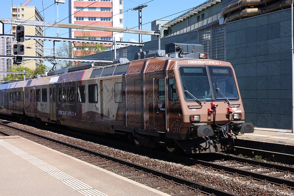 23 Domino avec livrée Chocolat-Express. La livrée a été mise en service à l'occasion de l'achèvement des travaux de la mise à voie normale de Bulle - Broc Fabrique