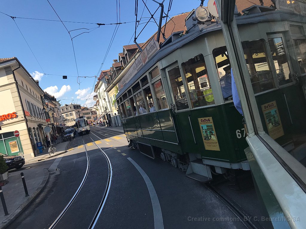 Be 4/4 67 et remorque Bi 363 Be 4/4 67 de l'AGMT (Association Genevoise du Musée des Tramways) Dans les rues de Carouge La Be 4/4 67 a ét mise en service en 1901 puis modernisée dans les années 30 La Be 4/4 67 avec numéro de ligne 1 à Cornavin