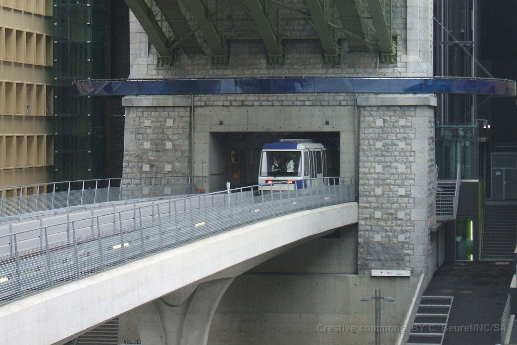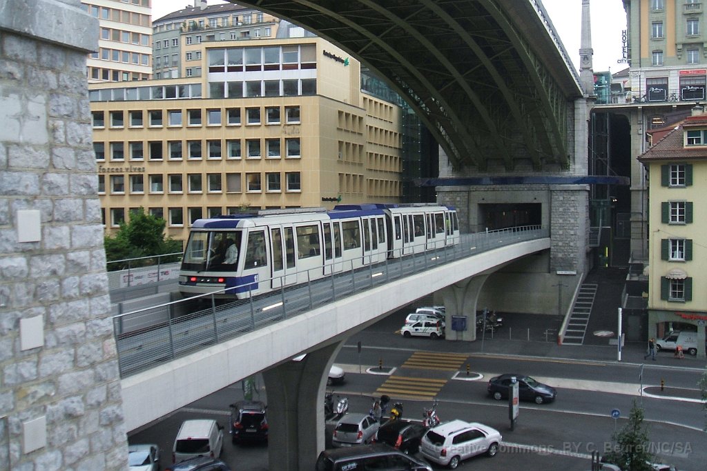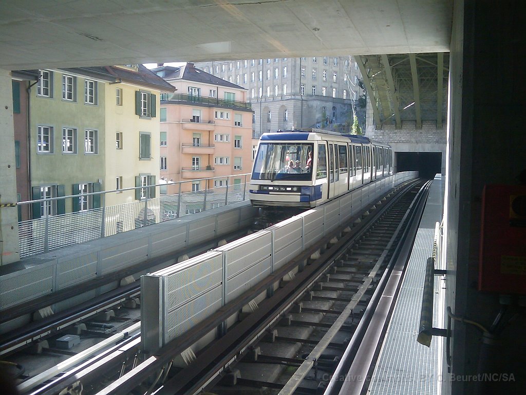 M2 au pont Bessière M2 dans la pile du Pont Bessière avec la station du même nom Appareils de voie à la Sallaz. Station Bessière avec vue vers l'extérieur Station Gare CFF avec la section à une voie dans l'ancien tunnel de la ficelle sous la gare. Sortie du tunnel et de la section à une seule voie.