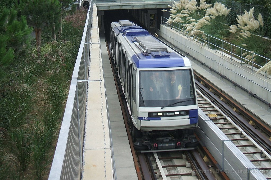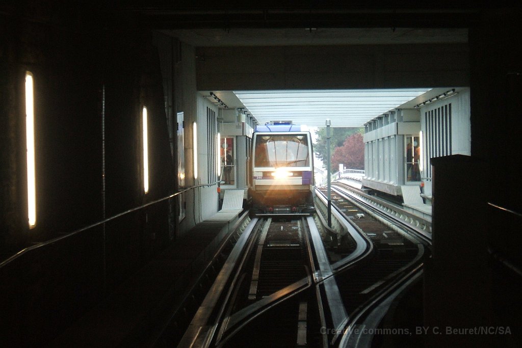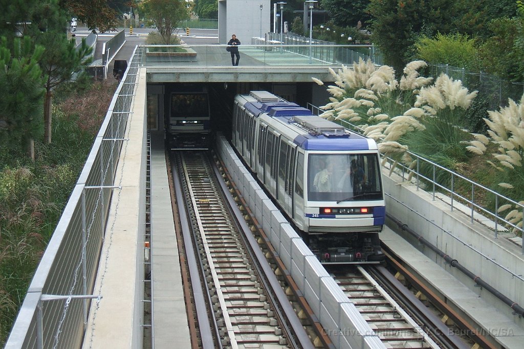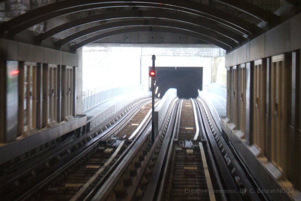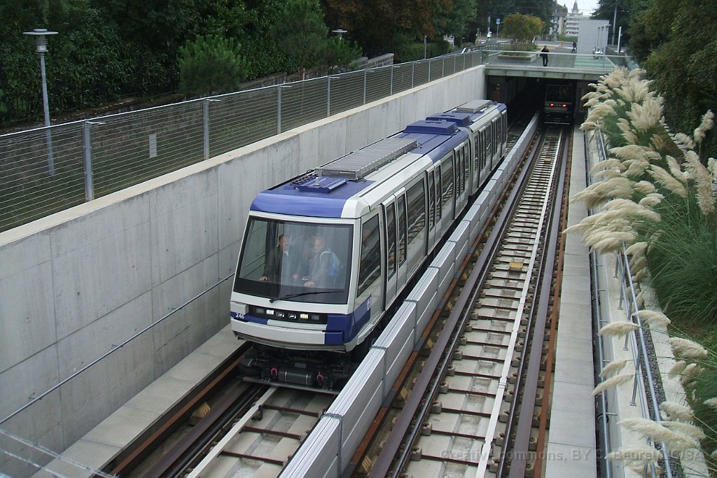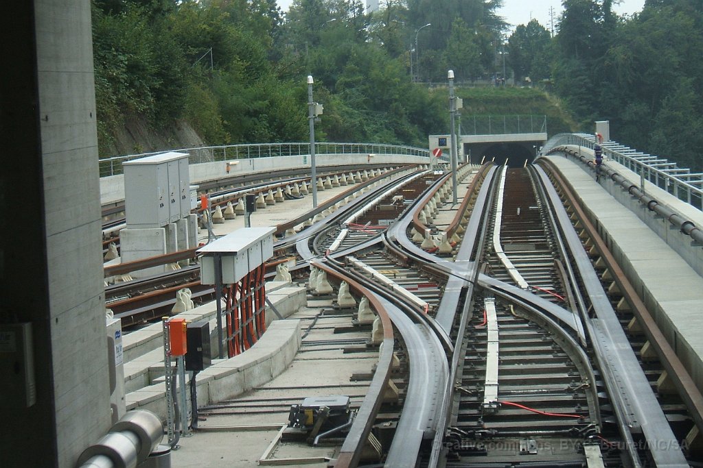 Croisement Deux rames se croisent à la station Jordils Entre Jordils et Délices Une rame du métro aous le pont Bessière Deux rames M2 à Ouchy