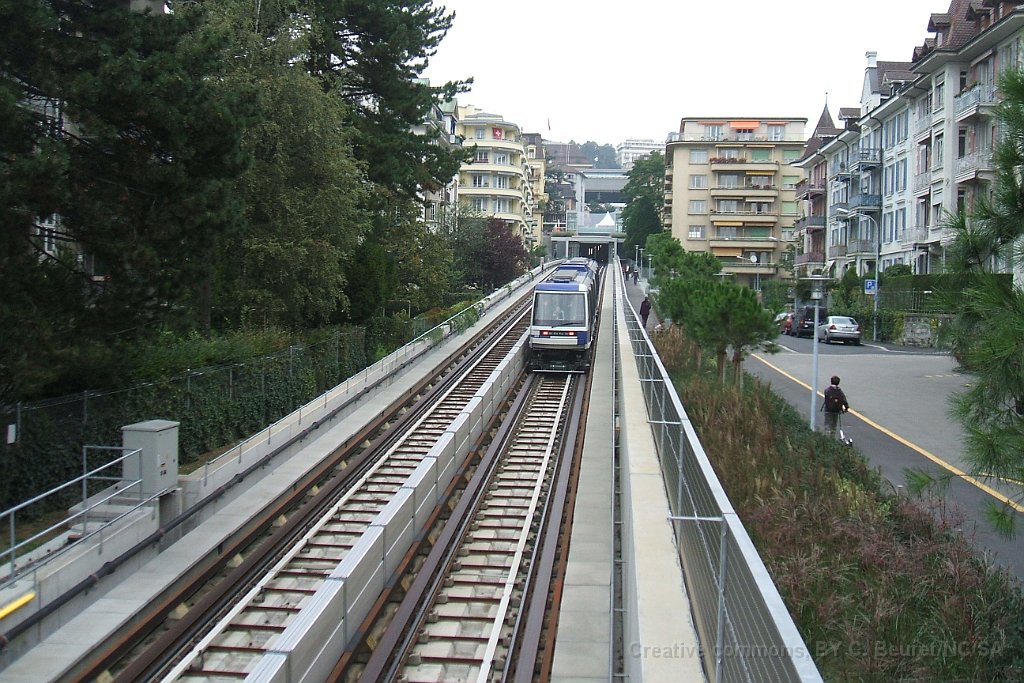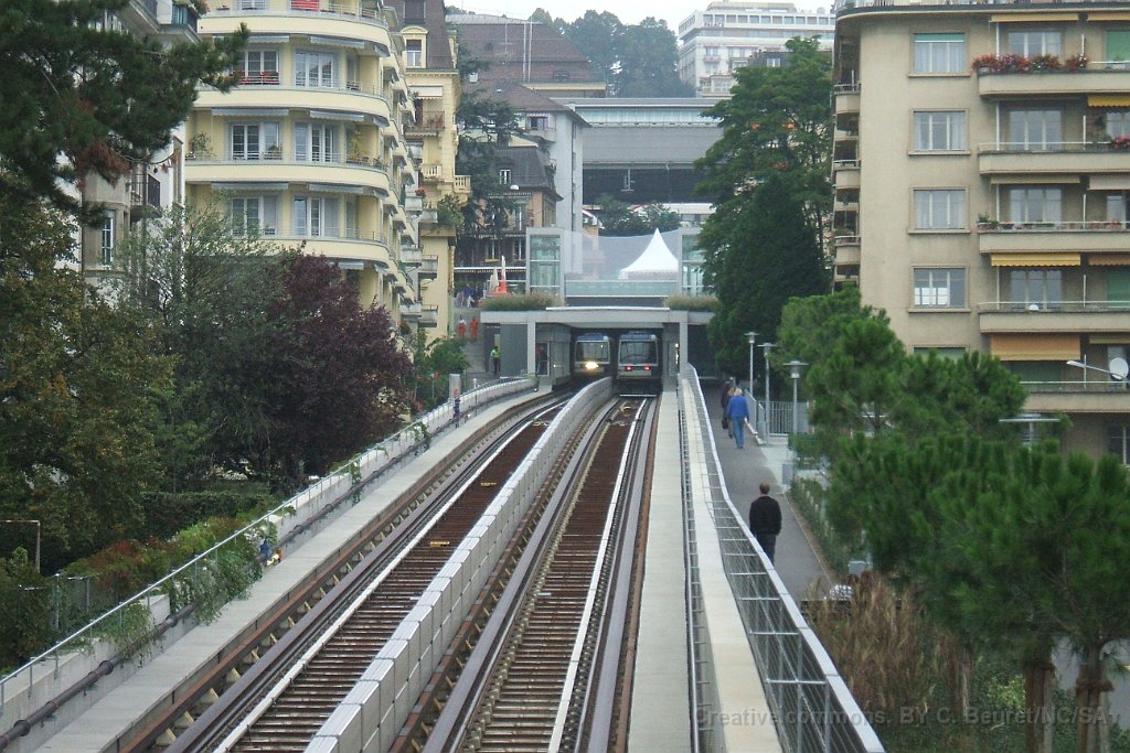 Rame du M2 Sur le trajet de l'ancienne ficelle M2 sur son parcours en plein-air Sur le trajet de l'ancienne ficelle Vue en direction de la gare Rame en direction d'Ouchy