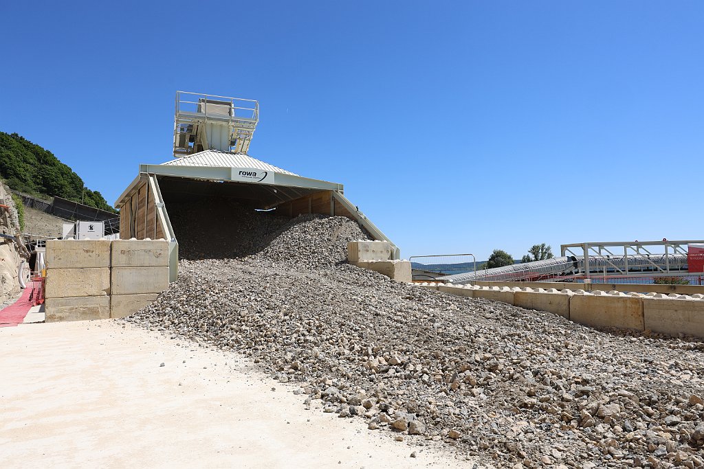 20 Entre le tunnel et la tranchée couverte, bande transporteuse pour l'évacuation des matérieux d'excavation.