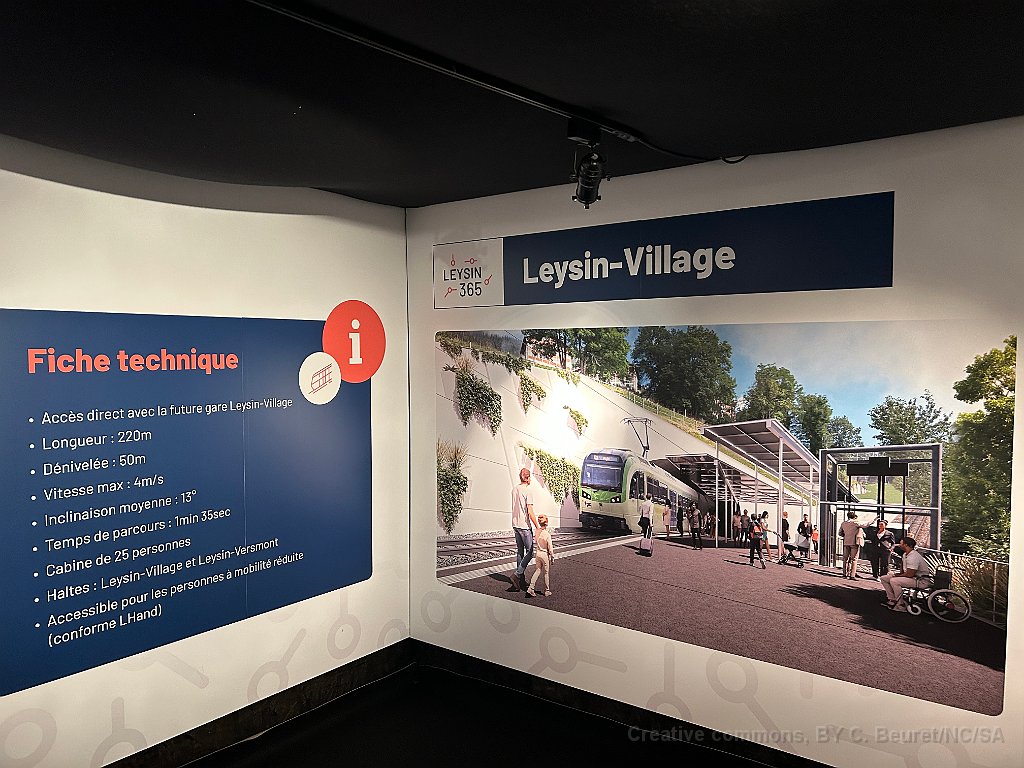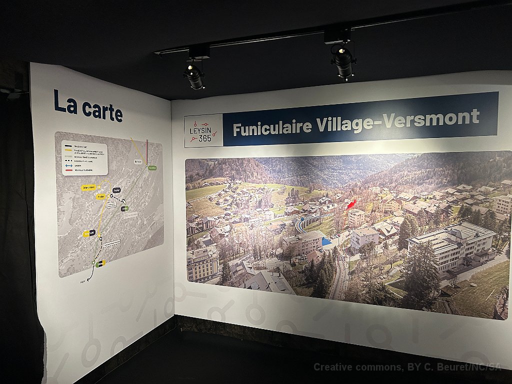 A l'occasion de la présentation du projet à la population, une exposition a été organisée au centre sportif de Leysin Tout d'abord une vue globale du projet et visualisation du funiculaire Village - Versmont La gare de Leysin-Village sera semi-enterrée Un ascenseur incliné ou funiculaire permettra de relier Versmont Ici les détails de la gare de Leysin-Village La gare de Leysin-Centre sera en tunnel