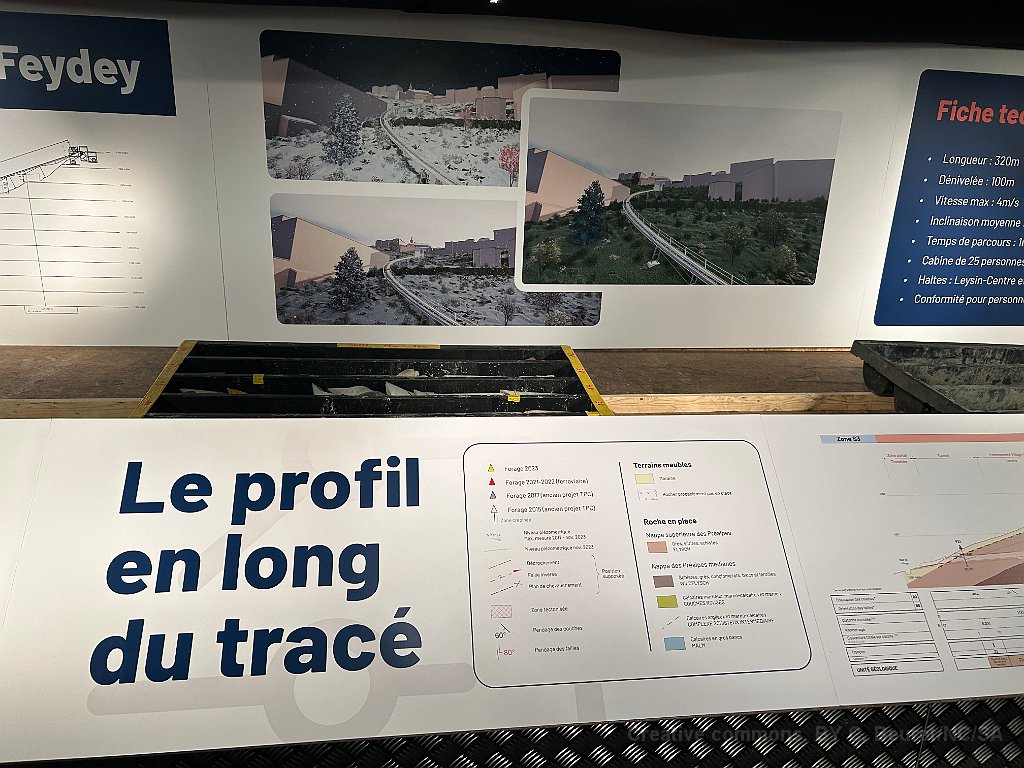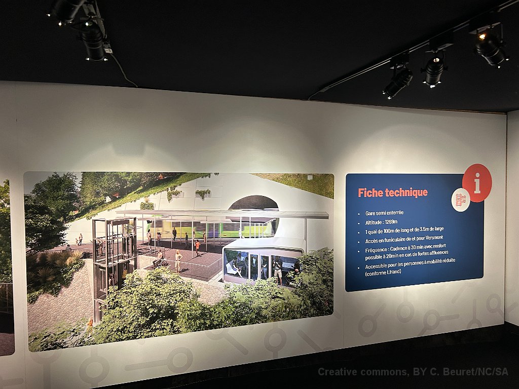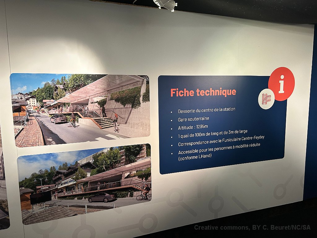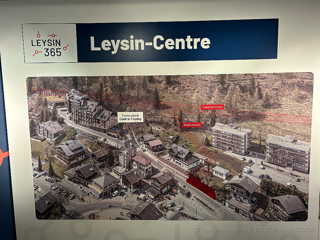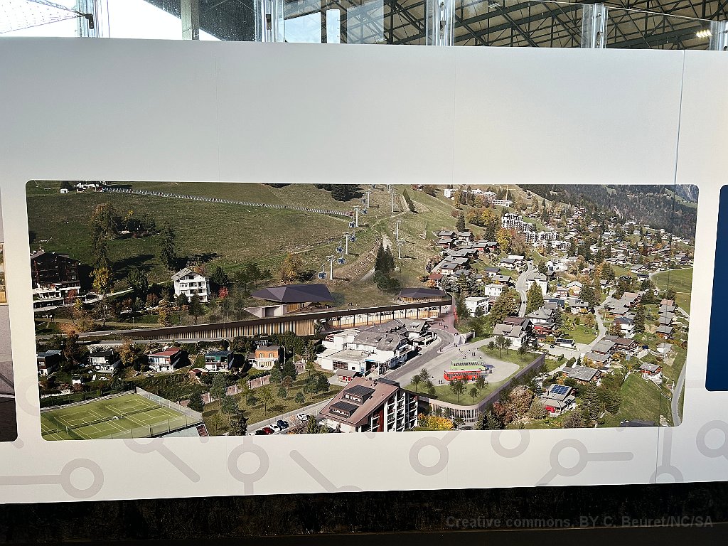Détails techniques et visualistion de la sortie de la gare Une coupe géologique Détails du panneau explicatif Un deuxième funiculaire permettra de rejoindre Feydey depuis le Centre La gare de Leysin-télécabine sera aussi semi-enterrée Visualisation de la future gare et du nouveau télécabine
