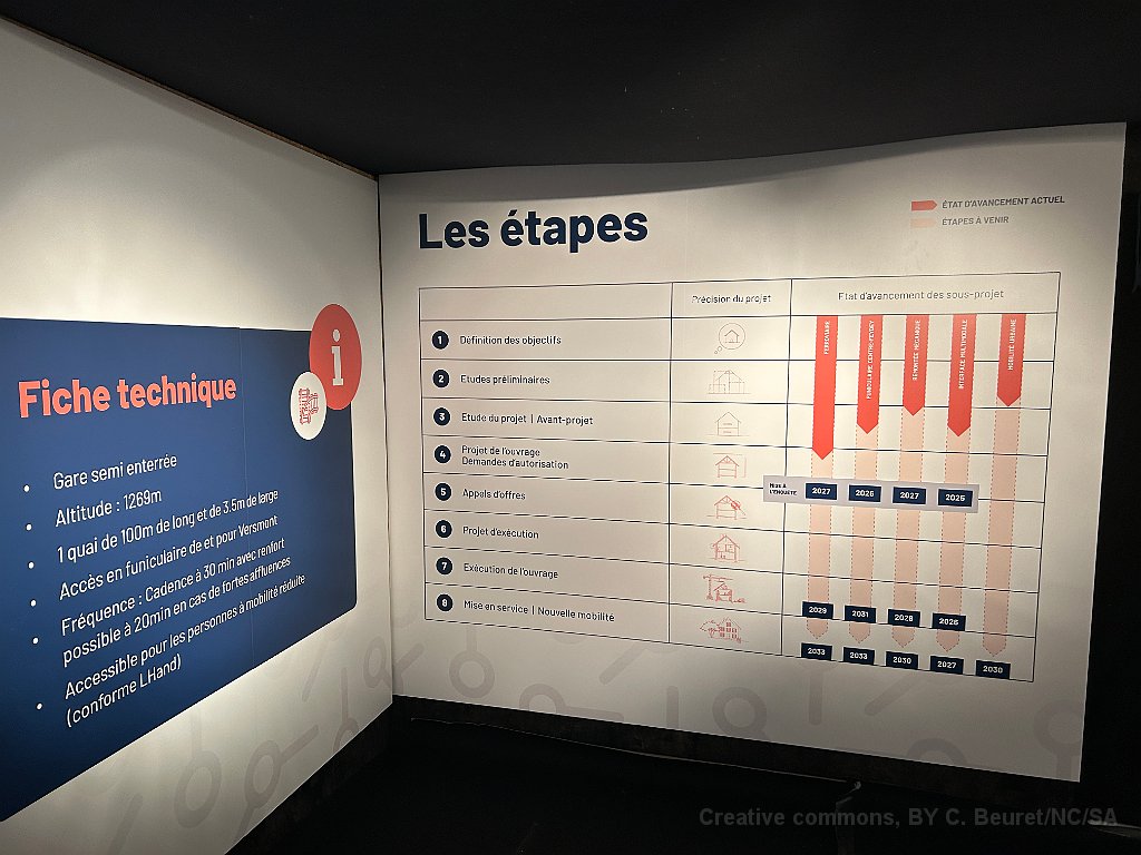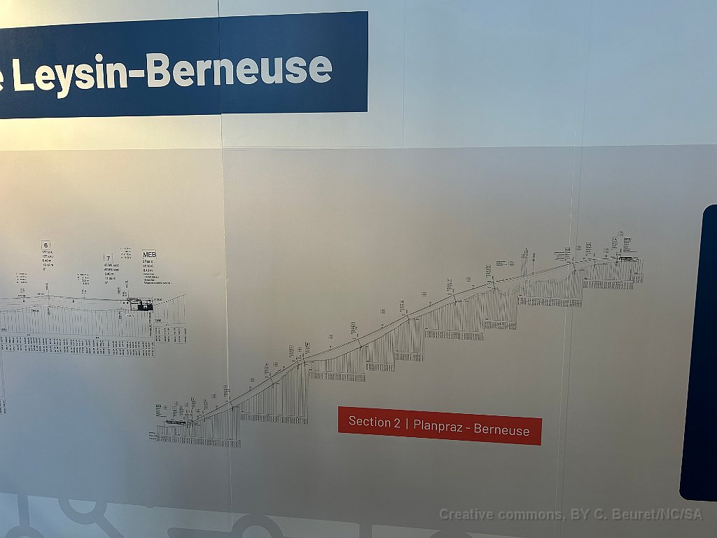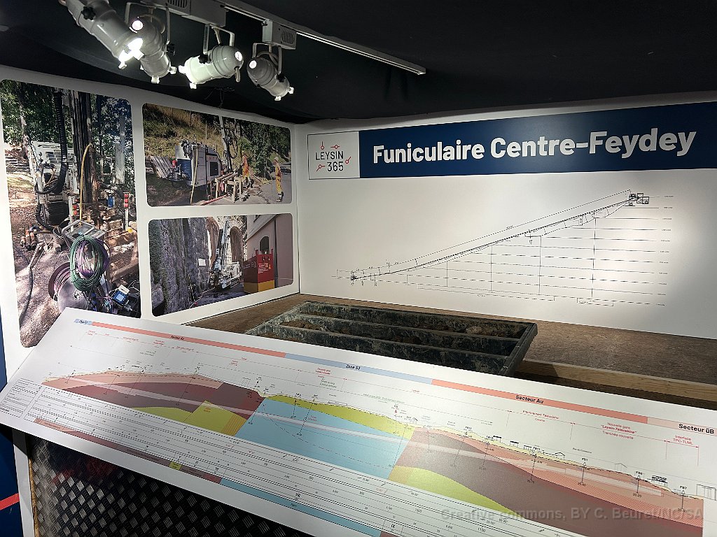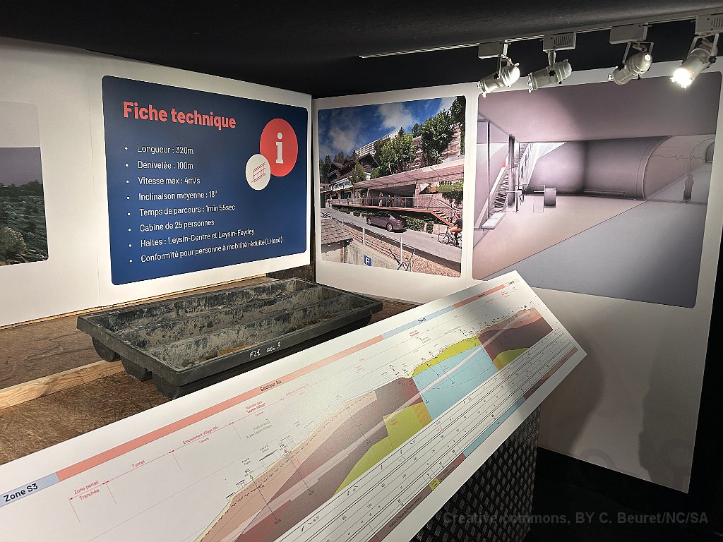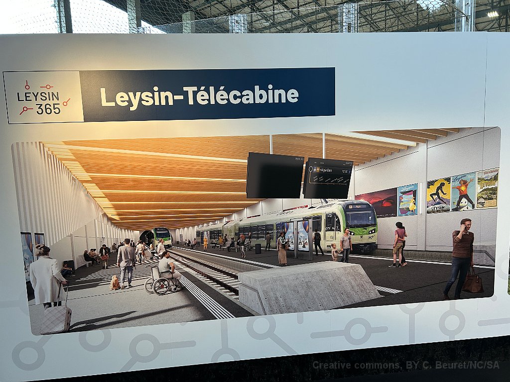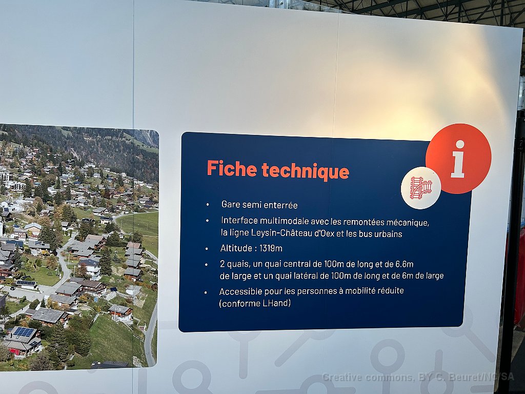 Détails techniques et visualistion de la sortie de la gare Une coupe géologique Détails du panneau explicatif Un deuxième funiculaire permettra de rejoindre Feydey depuis le Centre La gare de Leysin-télécabine sera aussi semi-enterrée Visualisation de la future gare et du nouveau télécabine