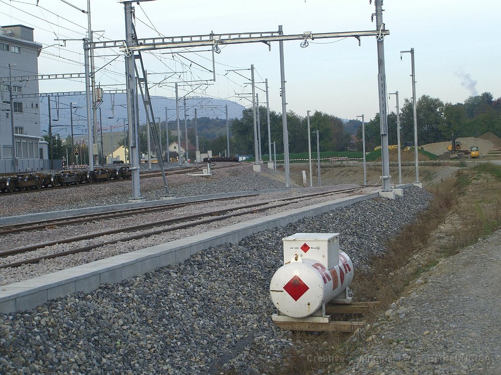Sortie de la gare de Suhr direction Menziken Préparation de la mise en place de la voie dans la courbe à la sortie de la gare côté Menziken Nouveau passage sous-voie Les nouvelles voies de la gare WSB Voies WSB au premier plan, CFF en arrière plan Les deux voies de droite direction Aarau vont passer sous la voie CFF (à gauche)