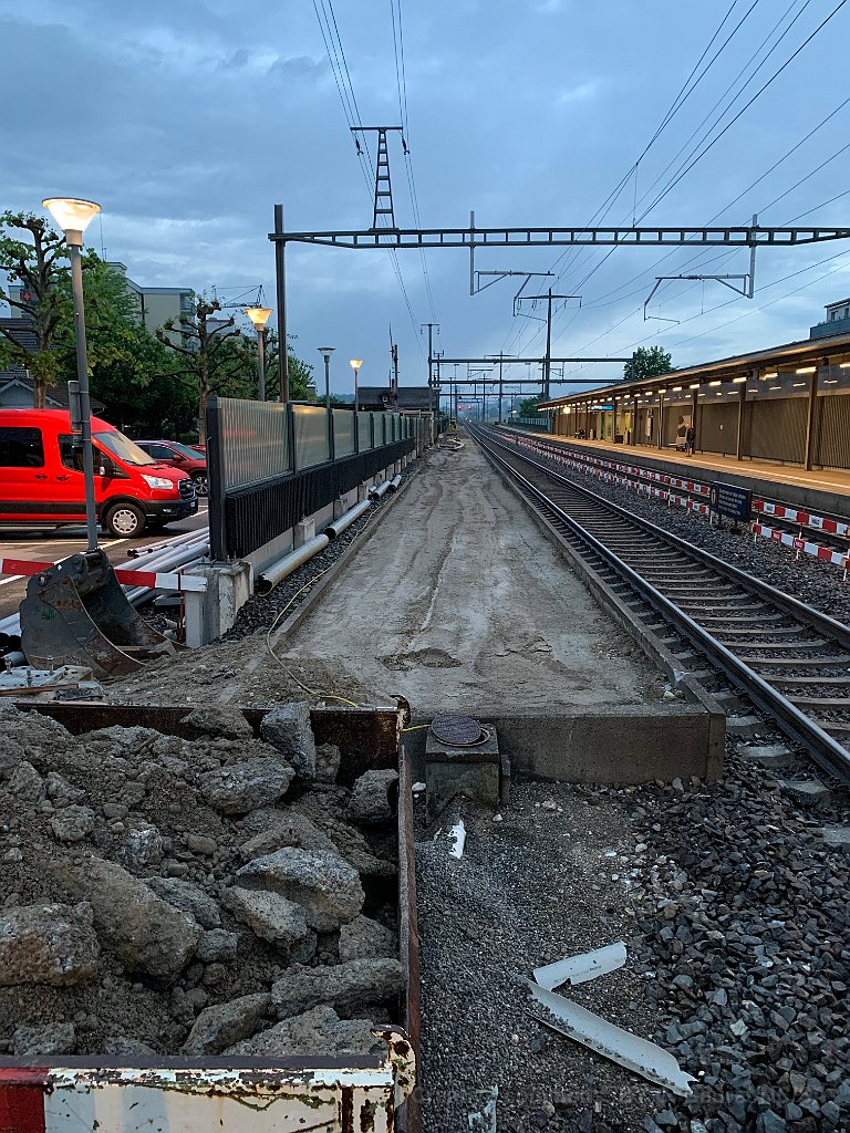 3 Rubigen: après le quai 1, c'est au tour du quai 2 d'être modifié. Comme pour le quai 1, un quai provisoire (au fonds de l'image) a été construit, pour permettre les travaux sans interruption de l'exploitation.