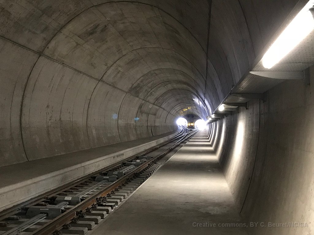 34 Dans le tube ouest. On devine les deux sorties vers Bellinzona et Locarno