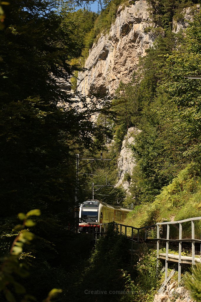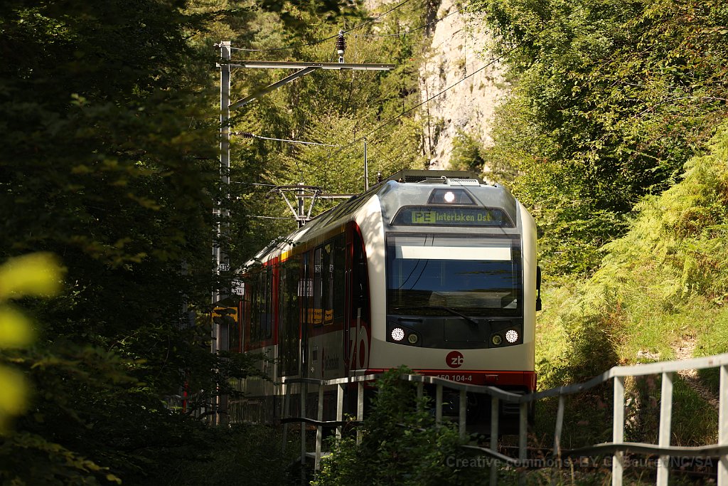 Un LIX (Luzern - Interlaken - Express) dans la descente de Brünig-Hasliberg à Meiringen ABeh 150 104 dans la forêt dite Hüsenwald En général les 150 roulent accouplée à une 160/161