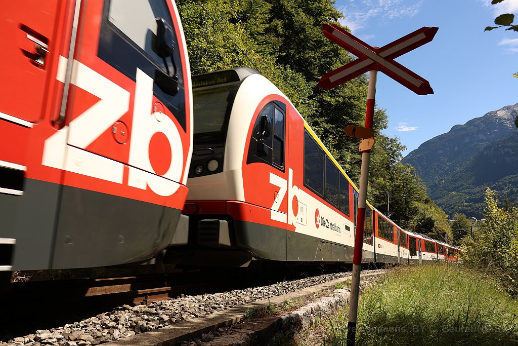 Voyage inaugural de la nouvelle rame "ADLER" du zb, ce qui signifie "alpiner, dynamischer, leiser, eleganter Reisezug" ABeh 150 201-8, le premier ADLER lors de son voyage inaugural, à Luzern L'IR Interlaken Ost - Luzern vient d'arriver à son terminus et porte déjà l'indication de la destination de son prochain voyage. L'Adler est éqiupé d'une voiture-Bistro. Voici le côté compartiment Et le côté bistro avec l'inscription de la ligne sur laquelle les ADLER sont utilisés L'autre poste de conduite de la même rame. On note que la numérotation distingue les deux extrémités: 150 104 de ce côté, 150 204 de l'autre.