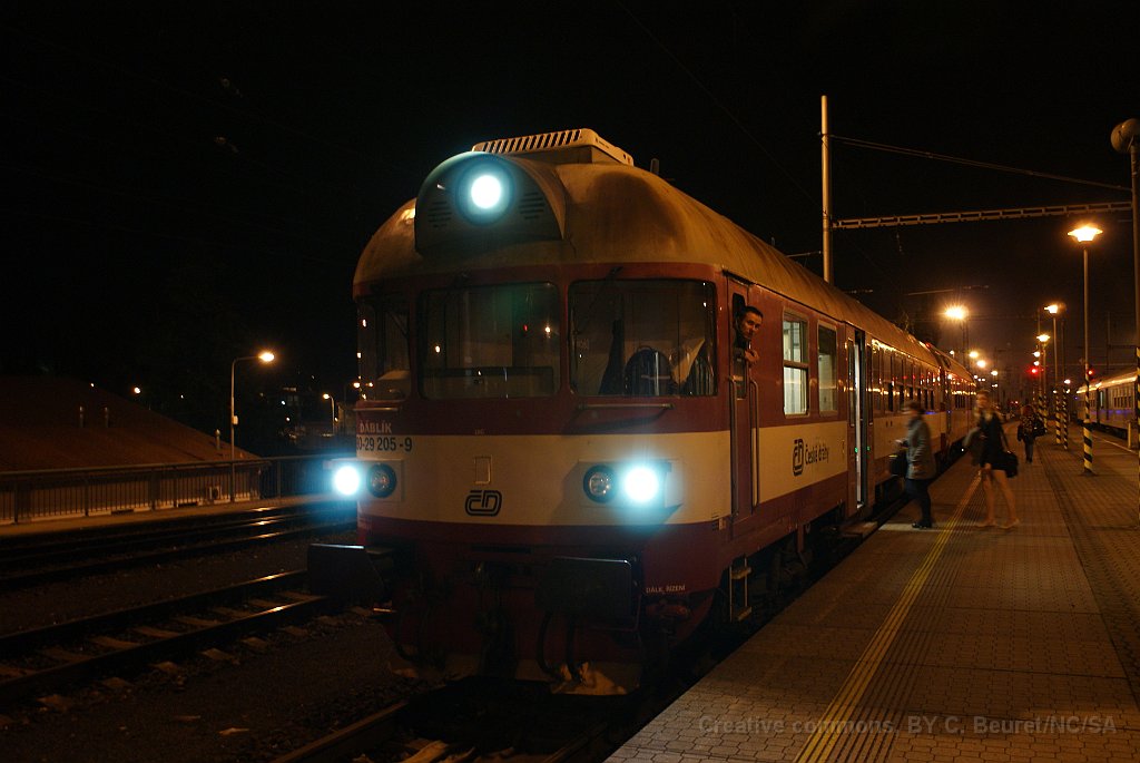 Une rame navette un peu plus ancienne à Prag Masarykovo Automotrice série 854 n° 205 "Dablik" à Děčín Une série 210 à la gare principale de Prague, Praha Hlavní Nádraží Děčín, cette 162 vient d'amener un train direct en provenance de Prague Une automotrice série 214 à Ústí nad Labem