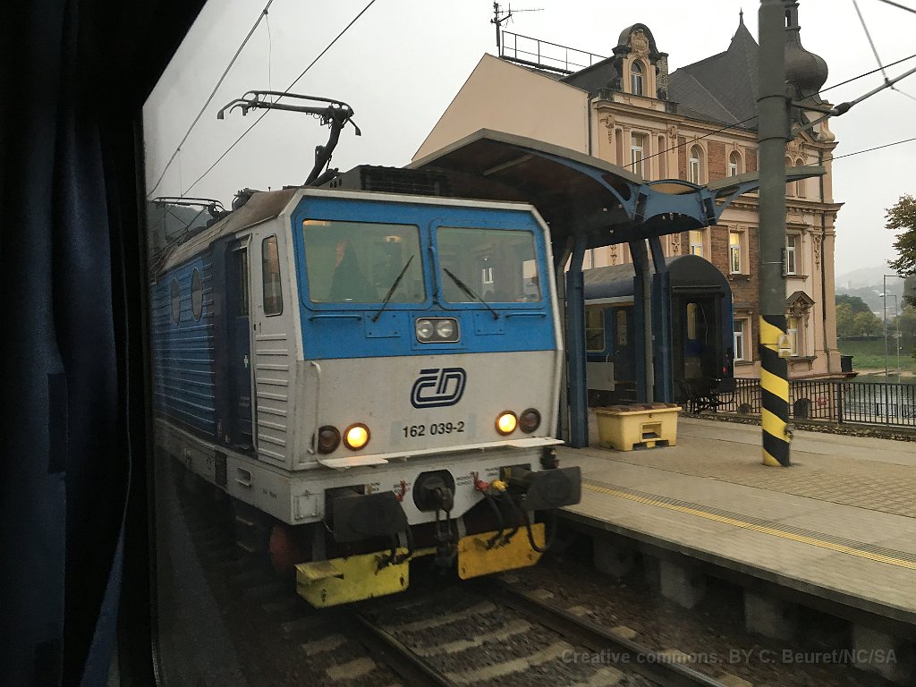 Une série 162 en tête de RE à Děčín Quelque part dans la vallée de l'Elbe, une rame marchandise avec une 123 (électrique) et une 753 "lunettes de plongée" des CD Cargo Une 714 effectuant du triage Encore une 123 avec un train de marchandises Rame à deux niveaus série 471 "City Elefant" en service RER à la gare de Prague Masarykovo Un petit autorail M 152 à la gare de Prag Masarykovo