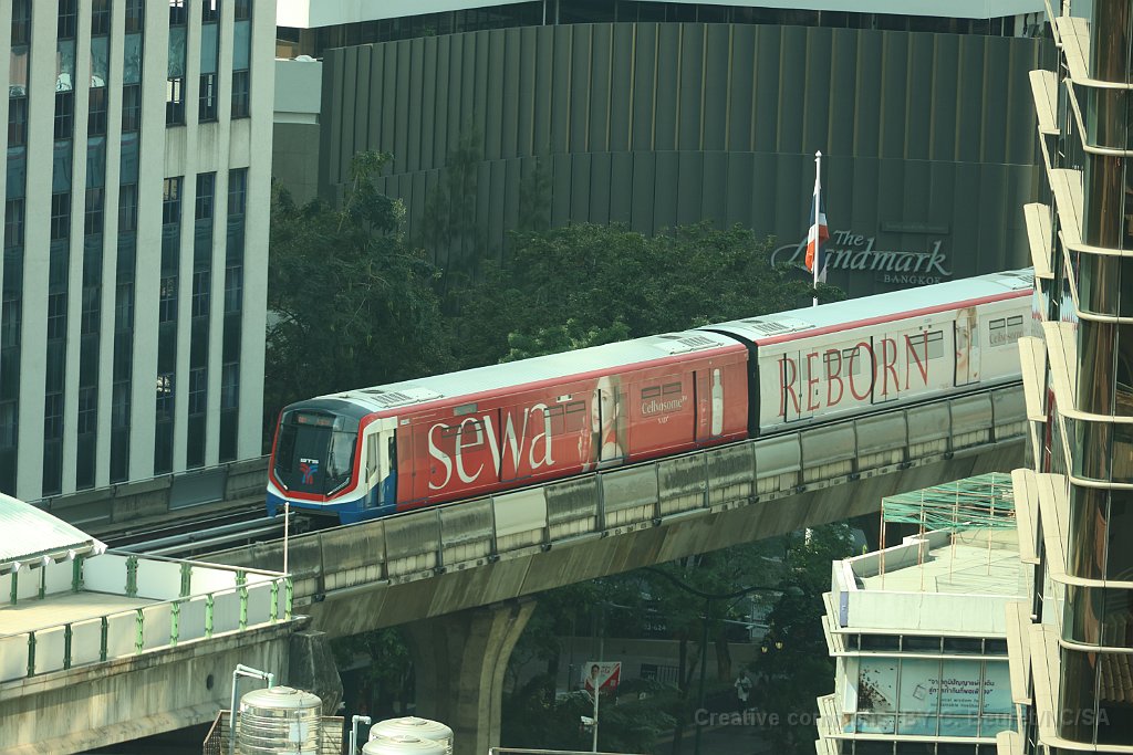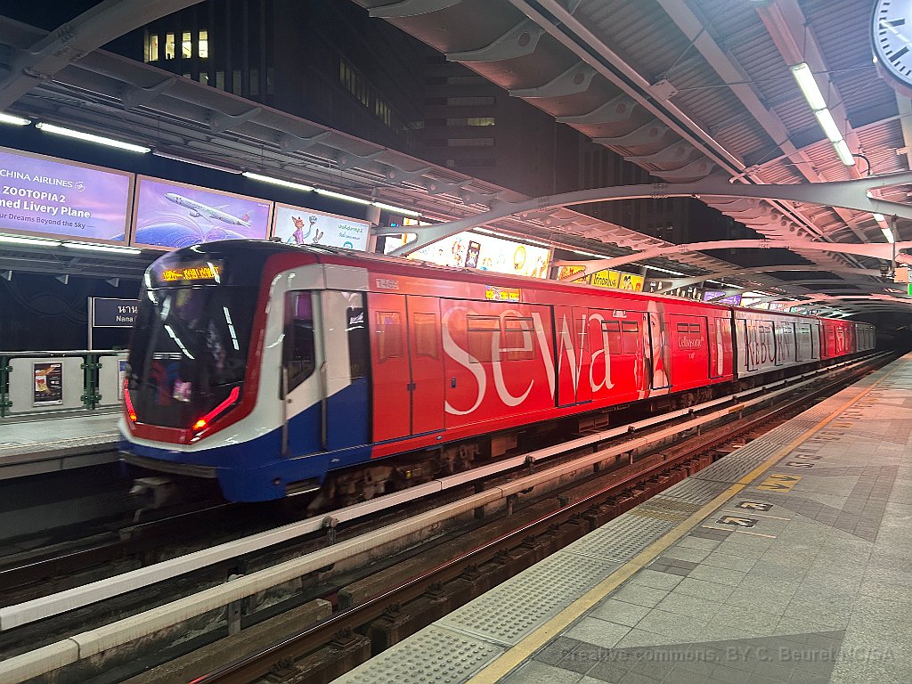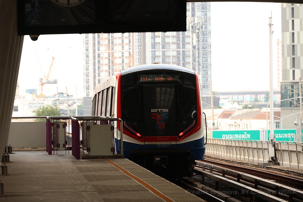 Une rame du Skytrain de Bangkok quitte la station de Nana Rame de la série A1 Rame de la série A2 arrivant à la station de Nana Sur la Silom Line, cette rame quitte la station de Wutthakat A la station Nana sur la Sukhumvit Line