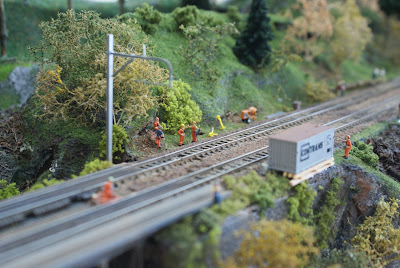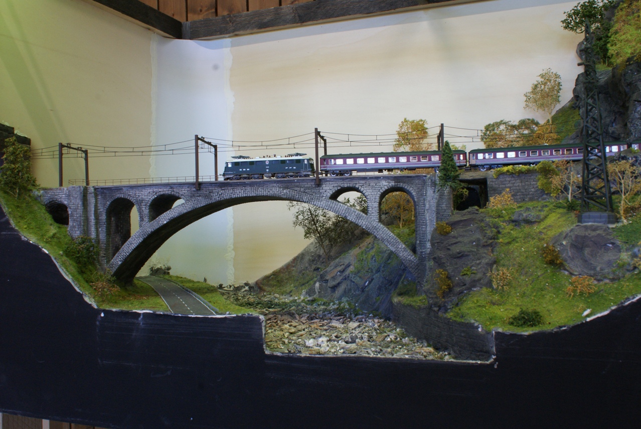 Francis a sorti son aérographe et amélioré la couleur de la caténaire sur nos segments. Elle devient ainsi presque invisible et pourtant présente. Juste superbe.