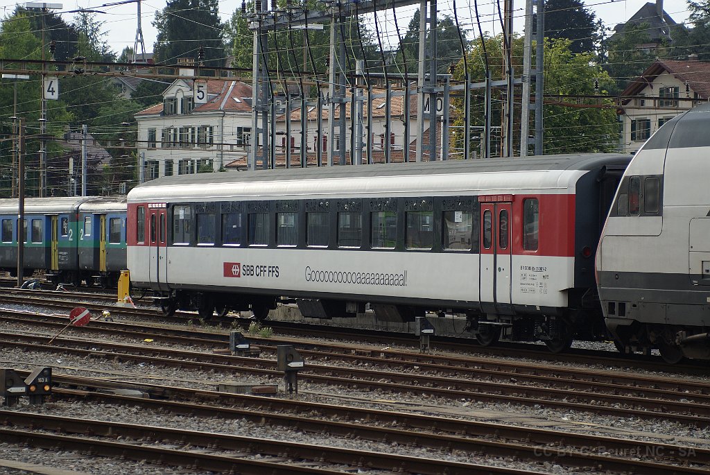 3 B VU I transformée et spécialement décorée pour le transport de supporter de football et Bm RIC comme outil de promotion de la sécurité au sein de l'entreprise. Photographiées à Luzern